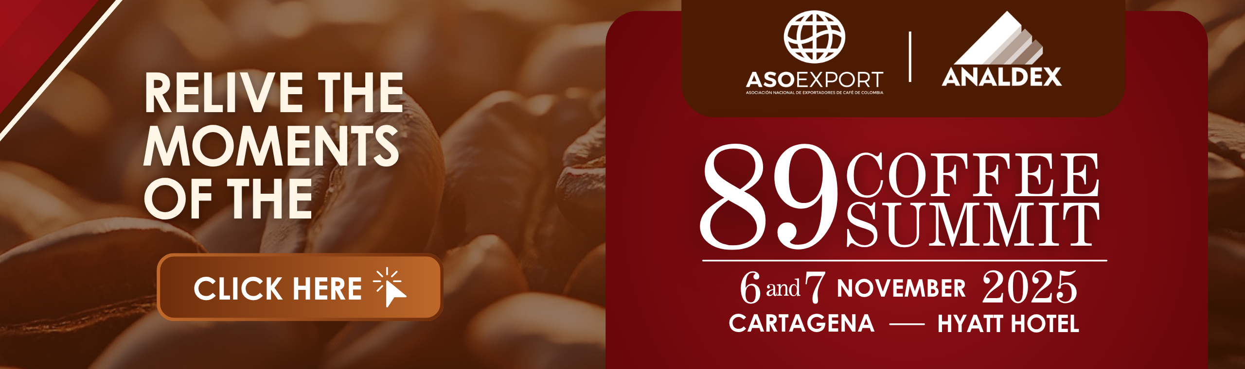 With more than 90 years of history, the Asociación Nacional de Exportadores de Café de Colombia - Asoexport (National Coffee Exporters Association of Colombia) is a private and non-profit organization that represents more than 75% of the Colombian coffee exports, and works constantly to carry out strategic projects that drive the sector forward.